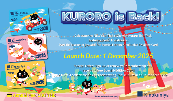 Join as a Kinokuniya Privilege Card member* and enjoy 10% off retail price (Books) at all Kinokuniya Thailand stores and Kinokuniya Webstore.